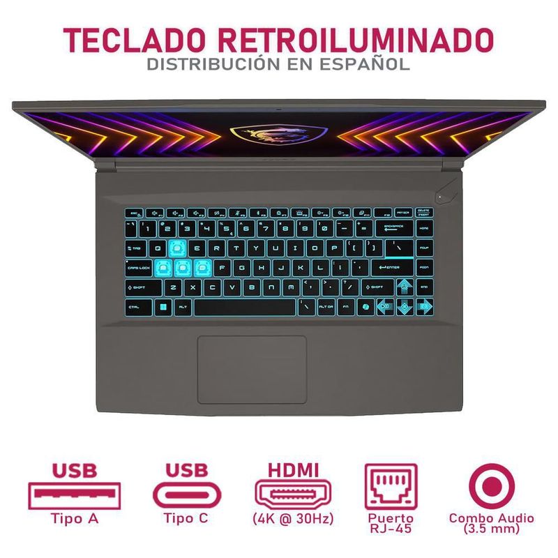 CómputoPortátilesGamingLaptop gamer msi rtx 4050 core i5 32gb 1tb mochila + mouse
