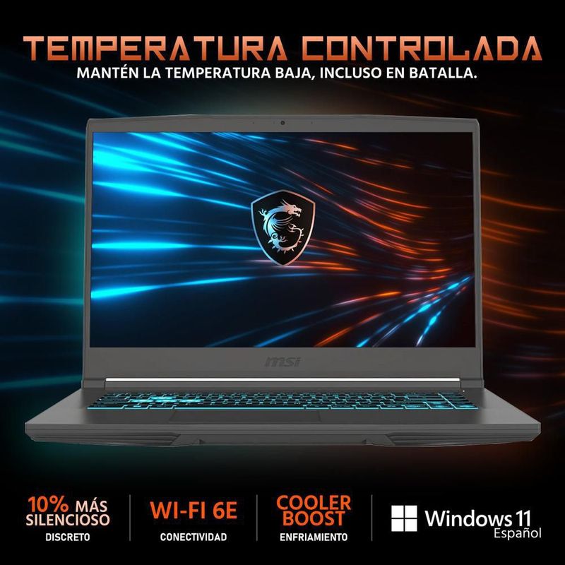 CómputoPortátilesGamingLaptop gamer msi thin rtx 2050 ryzen 5 32gb 512gb mouse dxt