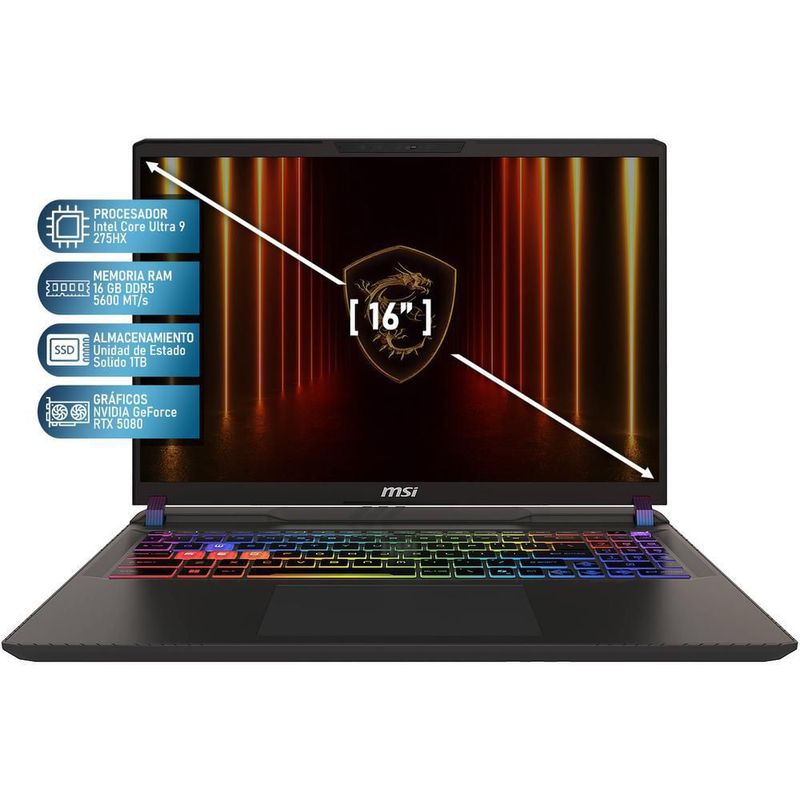 CómputoPortátilesGamingLaptop gamer msi vector rtx 5080 core ultra 9 16gb 1tb