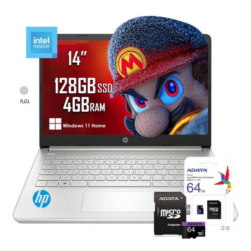 CómputoPortátilesLaptopsLaptop HP 14-DQ6015DX Intel N150 128GB 4GB RAM Rosa Gold Windows 11 con Micro SD