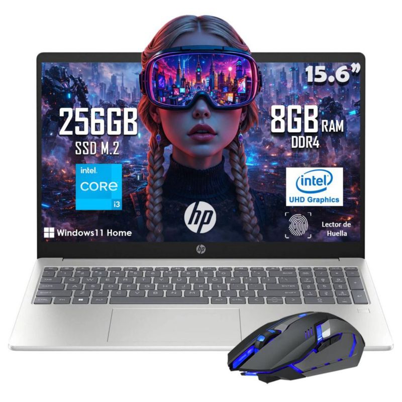 Laptop HP 15-fd0133wm Core i3-N305 256GB SSD 8GB RAM con Mouse