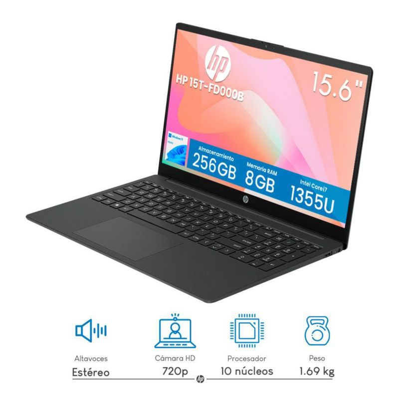 LAPTOP HP 15T-FD000B INTEL CI7-1355U 10C 8GB 256GB SSD PCIE 15.6PULG
