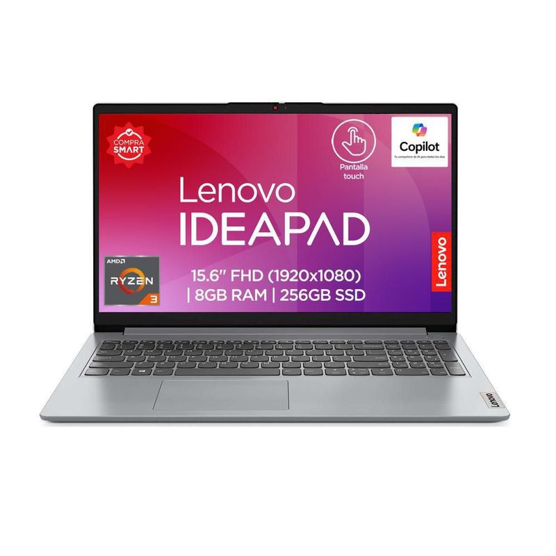 CómputoPortátilesLaptopsLaptop Lenovo IdeaPad 1 15AMN7 AMD Ryzen 3 8GB 256GB SSD Touch 15.6" Gris