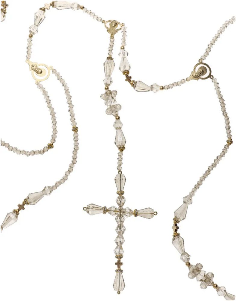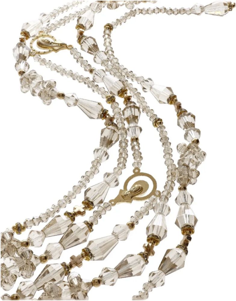 Moda y accesoriosJoyeríaOtrosLazo Cristal Honey Dorado Con Cruz Chica Y Virgen Maria