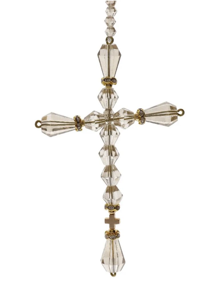 Lazo Cristal Honey Dorado Con Cruz Chica Y Virgen Maria