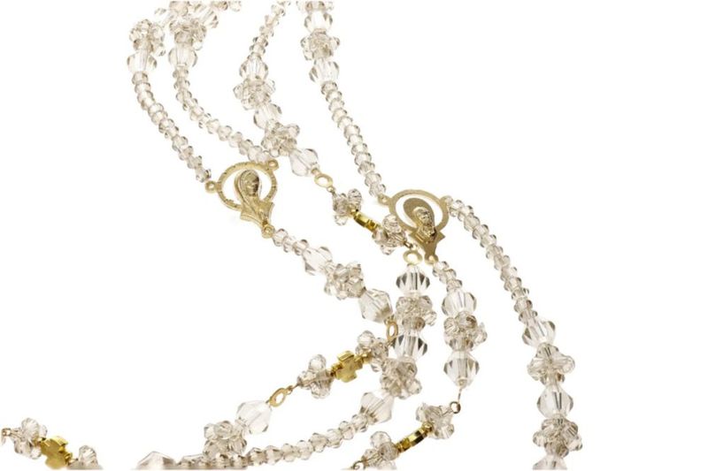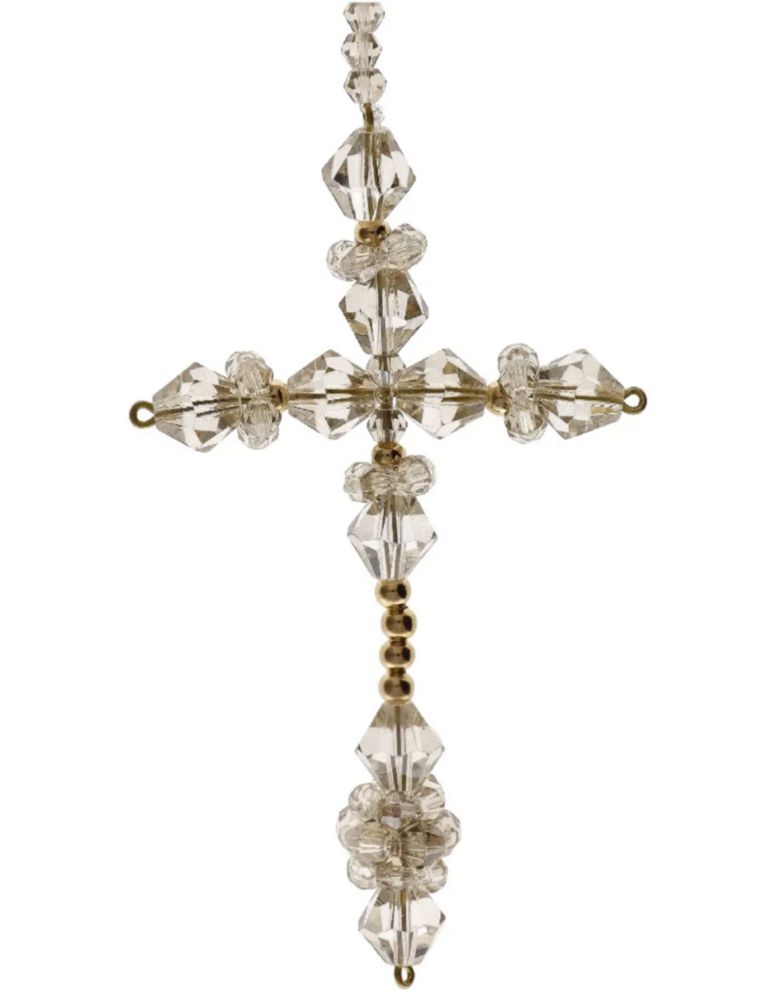 Lazo Cristal Honey Dorado Con Cruz Grande Y Virgen Maria