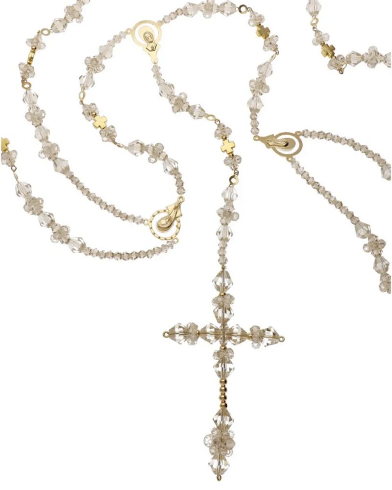 Moda y accesoriosJoyeríaOtrosLazo Cristal Honey Dorado Con Cruz Grande Y Virgen Maria