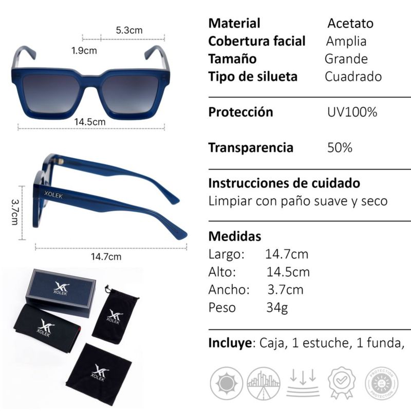 Moda y accesoriosLentesSolaresLentes De Sol Xolek 108 Acetato Cr39 Rb UV total