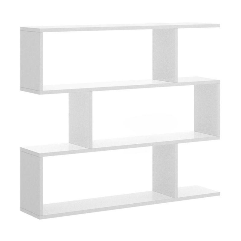 MueblesOficinaLibreros y EstantesLibrero Blanco Brillante en Zig-Zag con 3 Módulos de Almacenaje. Estructura de Madera MDF