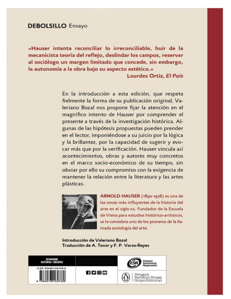Películas, música y librosLibrosArte y DecoraciónLibro Historia social de la literatura y el arte I Autor Arnold Hauser Editorial De Bolsillo
