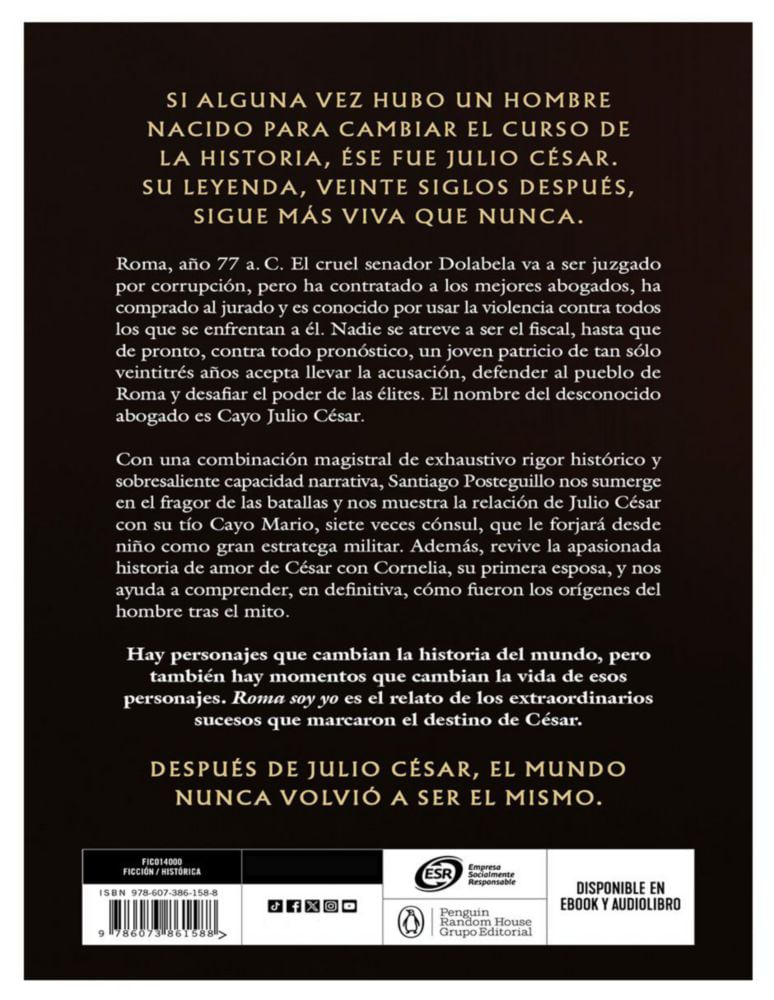 Películas, música y librosLibrosEducación y referenciaLibro Roma soy yo La verdadera historia de Julio Cesar Autor: Santiago Posteguillo Editorial: B de Bolsillo