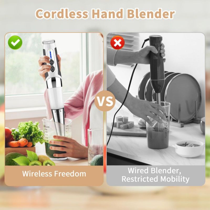 Licuadora de mano inalámbrica: potente licuadora de mano eléctrica recargable, 21 velocidades y 3 ángulos ajustables con cuchill