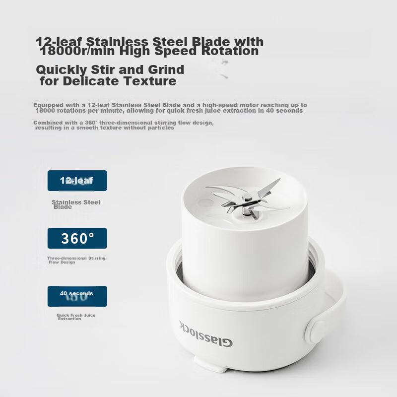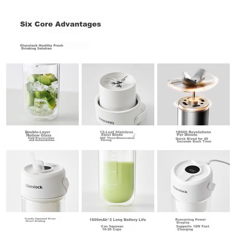 Licuadora Portátil Glasslock Ge-Ju03Wh Vidrio Doble Capa 340 Ml Recargable Inalámbrica