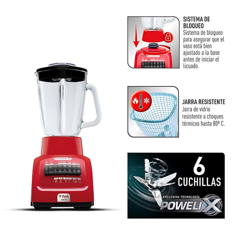 Línea blancaElectrodomésticosLicuadorasLicuadora T-fal LN8205MX 10 velocidades vaso de vidrio Infinyforce XL