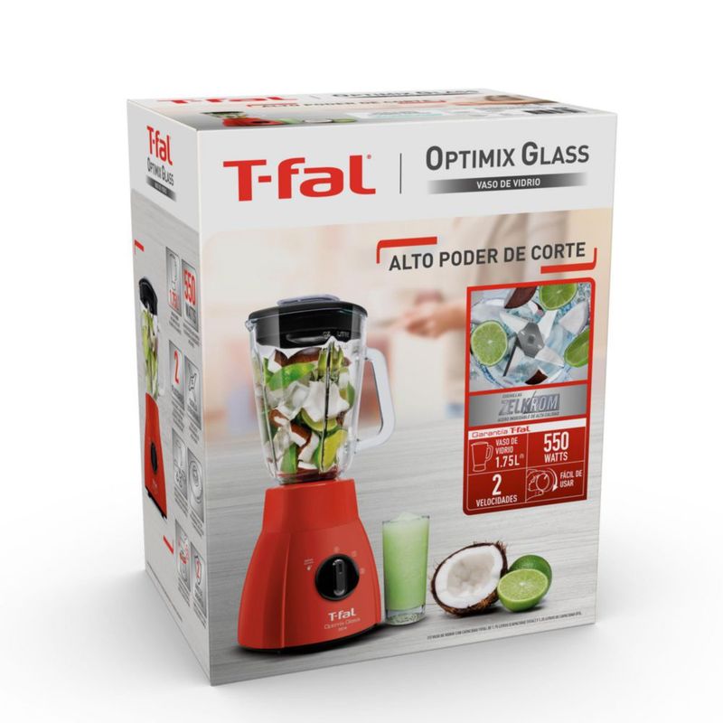 Licuadora T-fal Optimix Roja 2 Vel Vaso Vidrio 550W LN2785X0