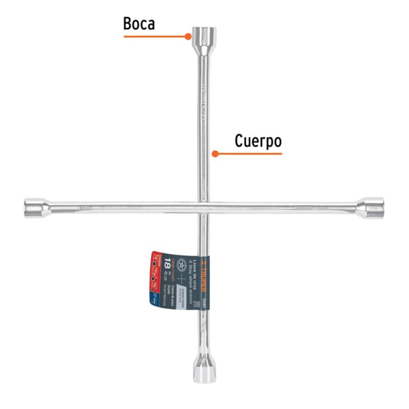 Llave de cruz 18" Cruzeta Pulida Cromada Truper 15480