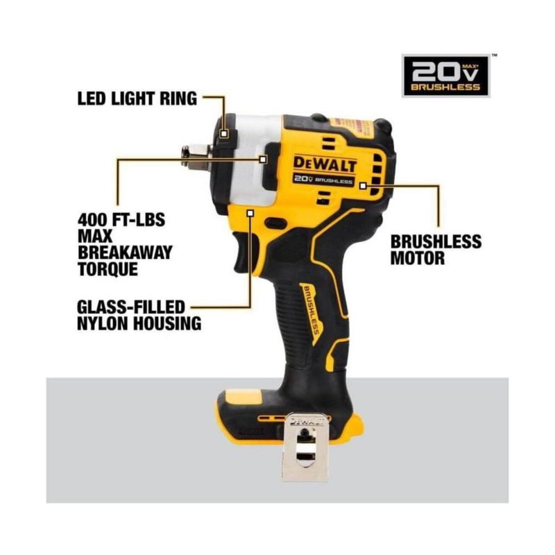 Llave de impacto inalámbrica, Dewalt DCF911B de 20 V de 1/2 pulgadas con yunque de anillo