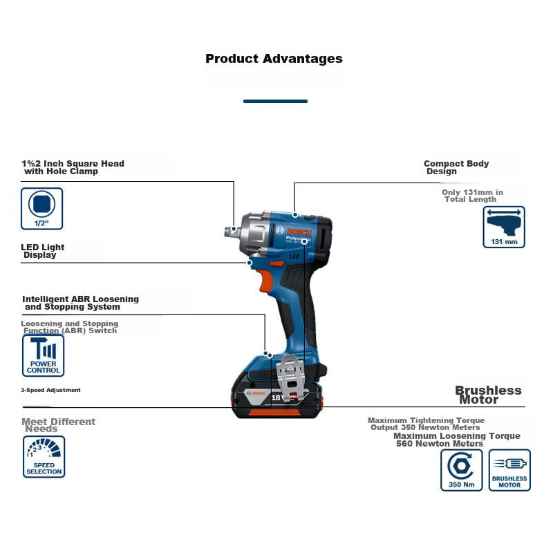 Llave Eléctrica Bosch Gds18V-350 1/2 Pulg 18V