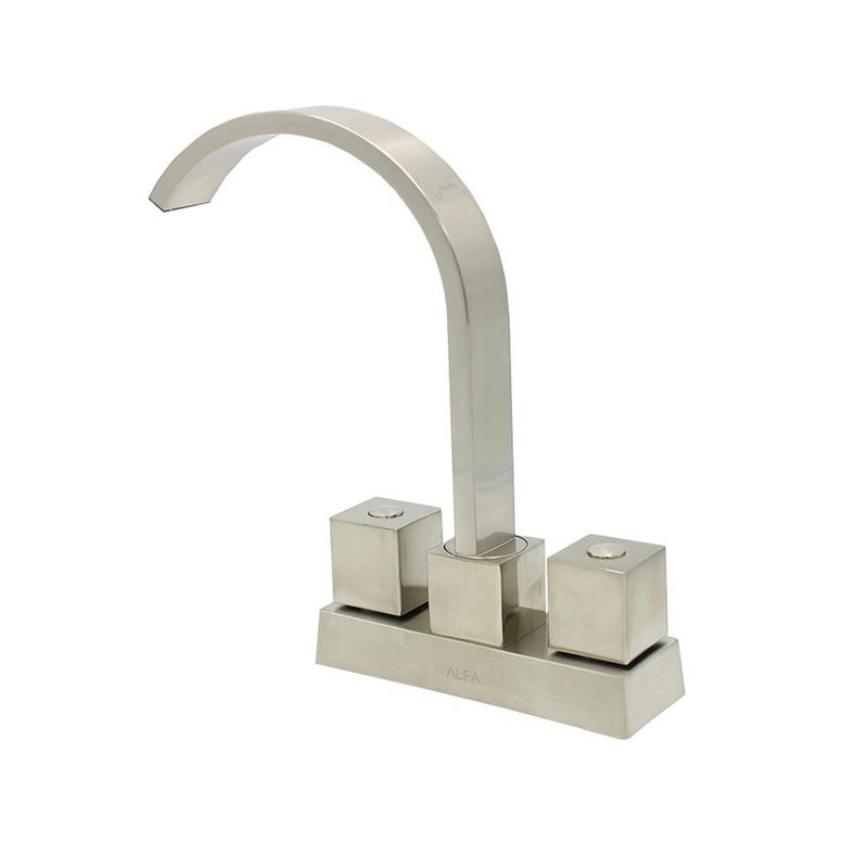 Llave Mezcladora Baño Lavabo Satinado Latón Maneral Cuadrado Plateado Satinado