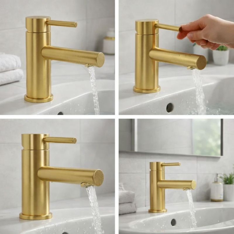 HerramientasPlomeríaLlaves y RegaderasLlave Monomando para Lavabo Urrea 9033INOX.5 Acabado Oro en Latón Diseño Moderno
