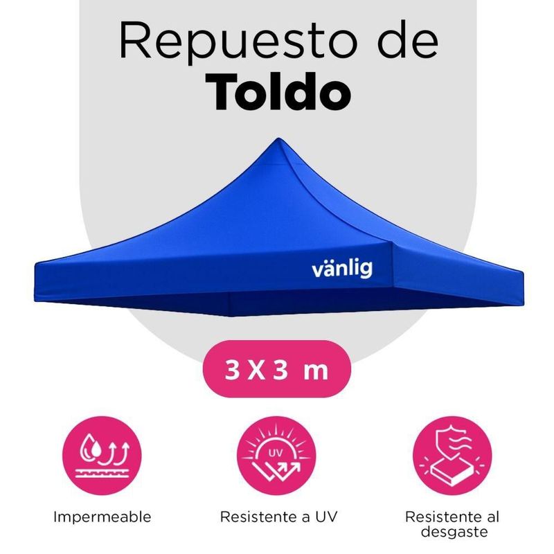 HogarPatio y JardínToldosLona Impermeable 3x3 M Poliéster Oxford 420D Vanlig Protección UV Reforzada Fácil Instalación con Velcro Lona de Repuesto Toldo Carpa Azul