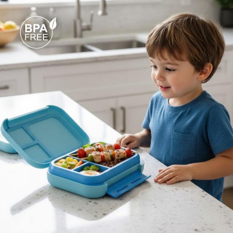 Lonchera para niño tipo bento box, lunch box c divisiones, sellado hermetico antifugaz; tupper para lunch (Nave espacial ) I LIBRE DE BPA
