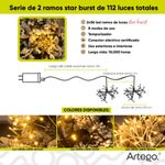 HogarDecoraciónAdornos de NavidadLuces serie 112 led star burst Artego con 2 ramos de 40cm de diámetro unidos de 56 leds ALPHA luz led cálida color cable dorado