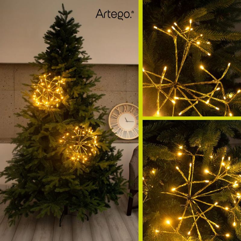 Luces serie 112 led star burst Artego con 2 ramos de 40cm de diámetro unidos de 56 leds ALPHA luz led cálida color cable dorado