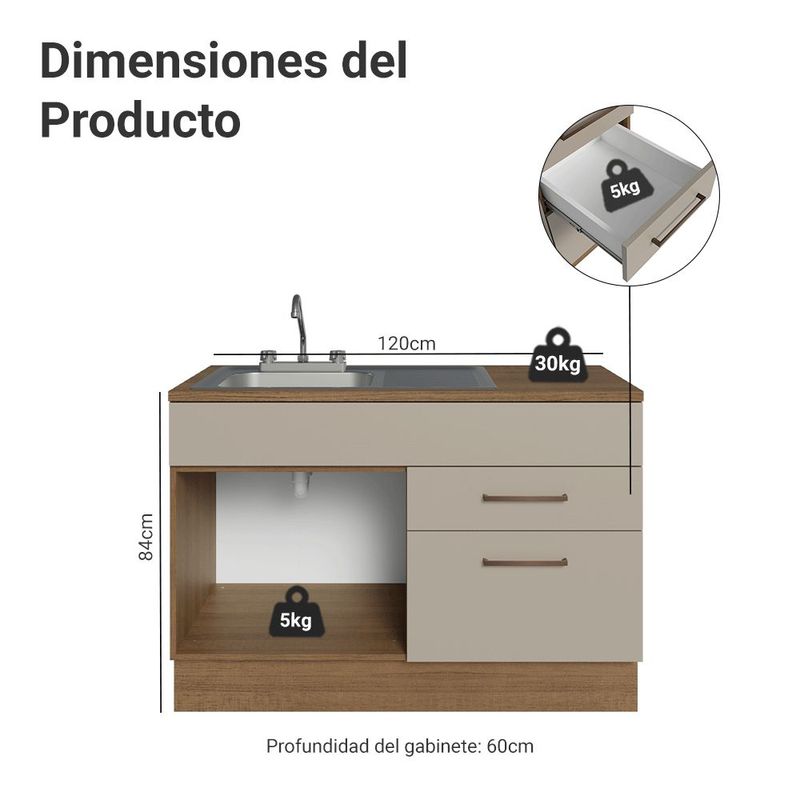 MueblesMuebles de cocinaAlacenas y DespenserosGabinete Bajo De Cocina Compacta Madesa Luna Con Tarja MC