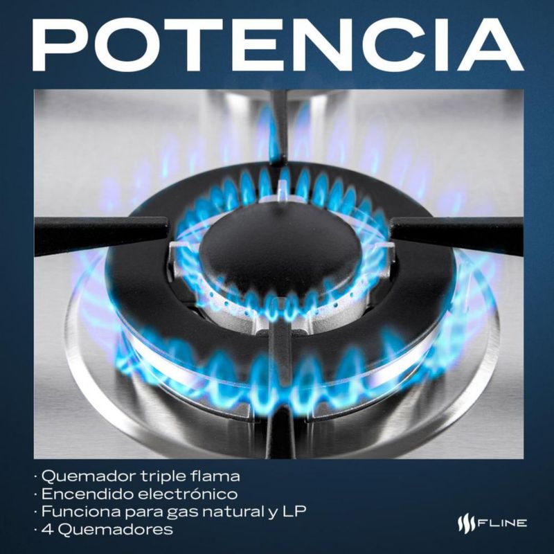 Parrilla de Gas Empotrable 4 Quemadores Acero Inoxidable FLINE Lund 4