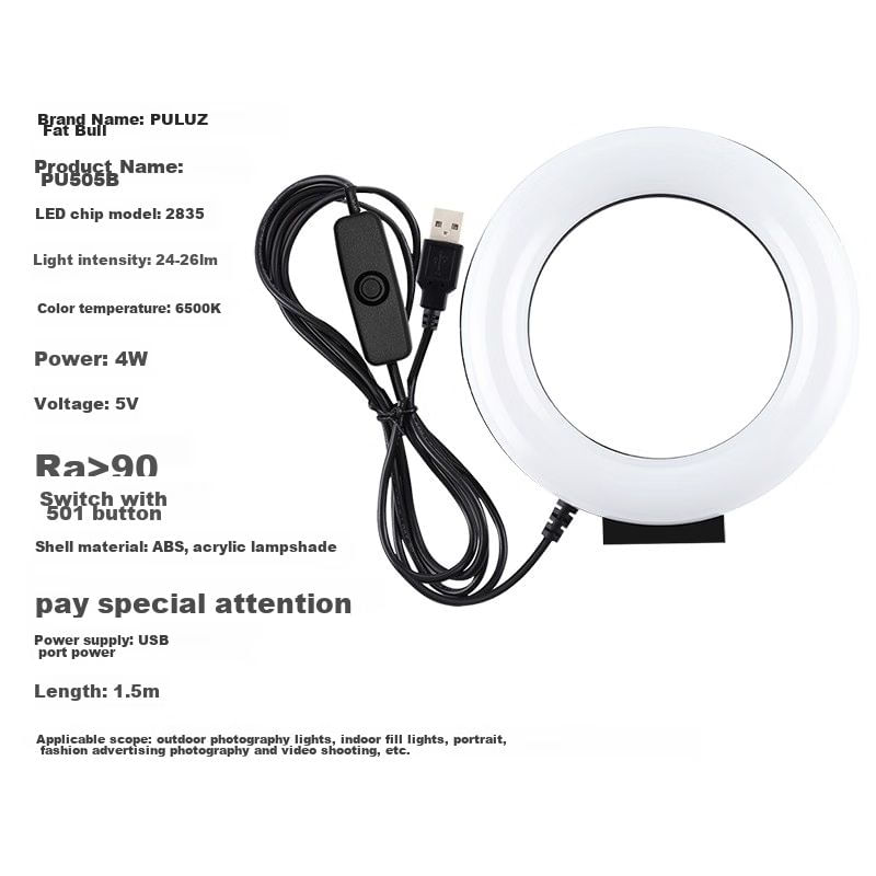 Luz De Anillo Puluz Pu505B Blanca 12 Cm Usb
