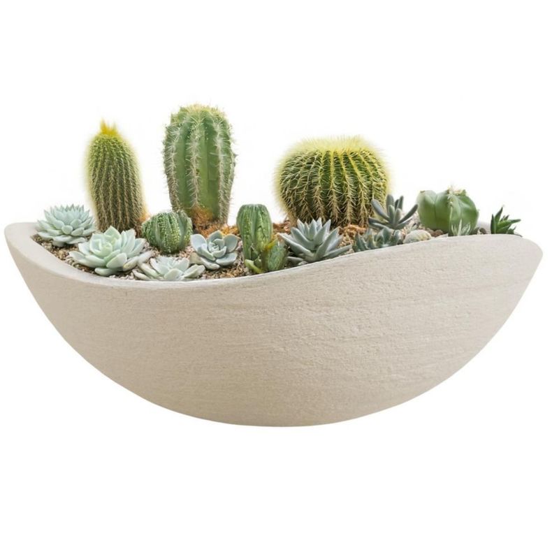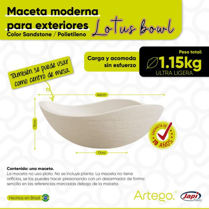 HogarDecoraciónMacetasMaceta moderna compacta tipo bowl centro de mesa de 17 cm alto x 46cm de ancho LOTUS color arena sandstone de Polietileno ultra ligera Artego Japi