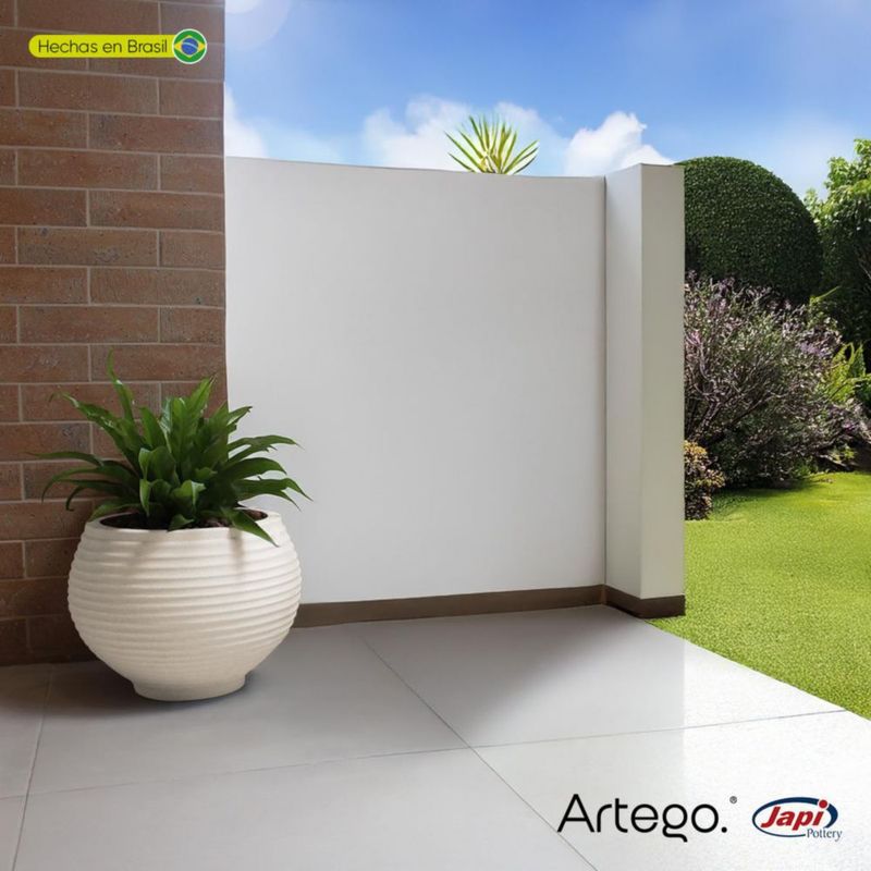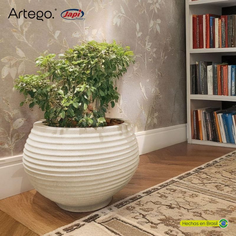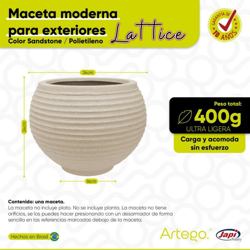 Maceta moderna para exteriores 24 cm de alto x 34 cm de ancho LATTICE color arena sandstone de Polietileno ultra ligera Artego Japi Hecho en Brasil