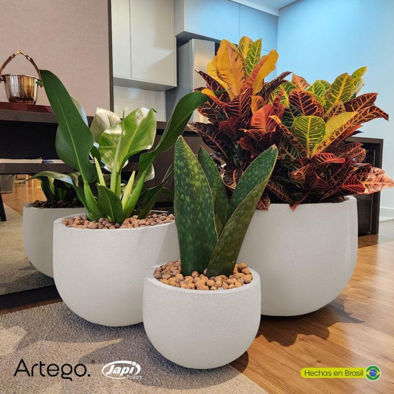 HogarDecoraciónMacetasMacetas Modernas Set De 3 Piezas 57-45-33cm Para Exteriores Antiq blanco White off De Polietileno Ultra Ligera Artego Japi Hecha en Brasil