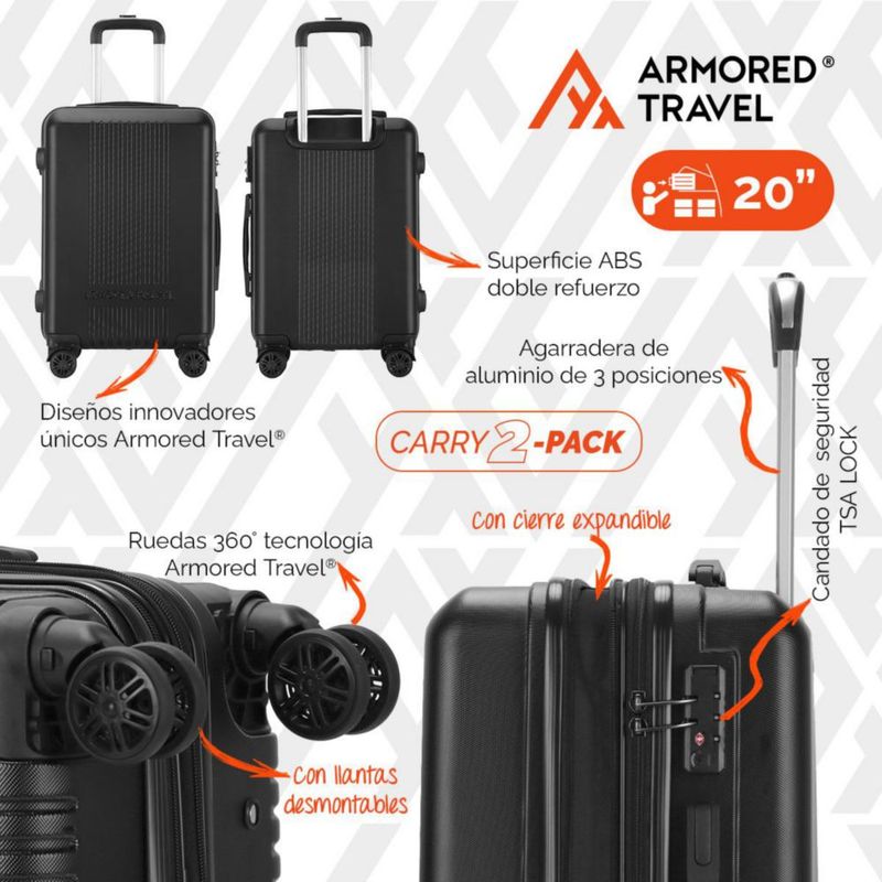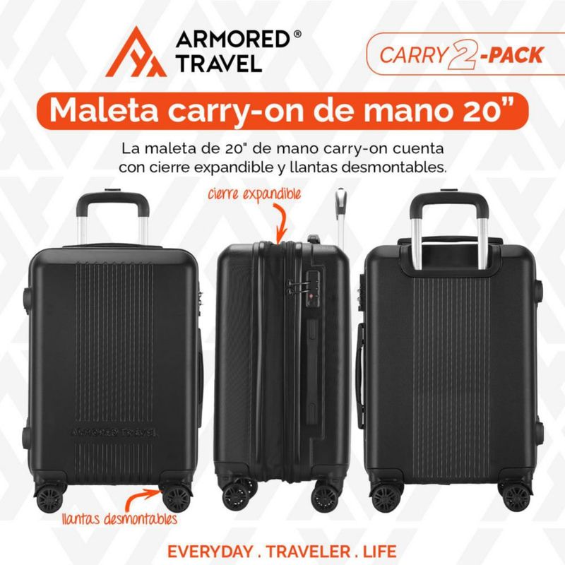 Maletas de viaje carry-on NITRO de mano cabina 10kg Rígida set de viaje 2 pack 20” + 16” ABS doble calibre con cierre expandible, llantas desmontables