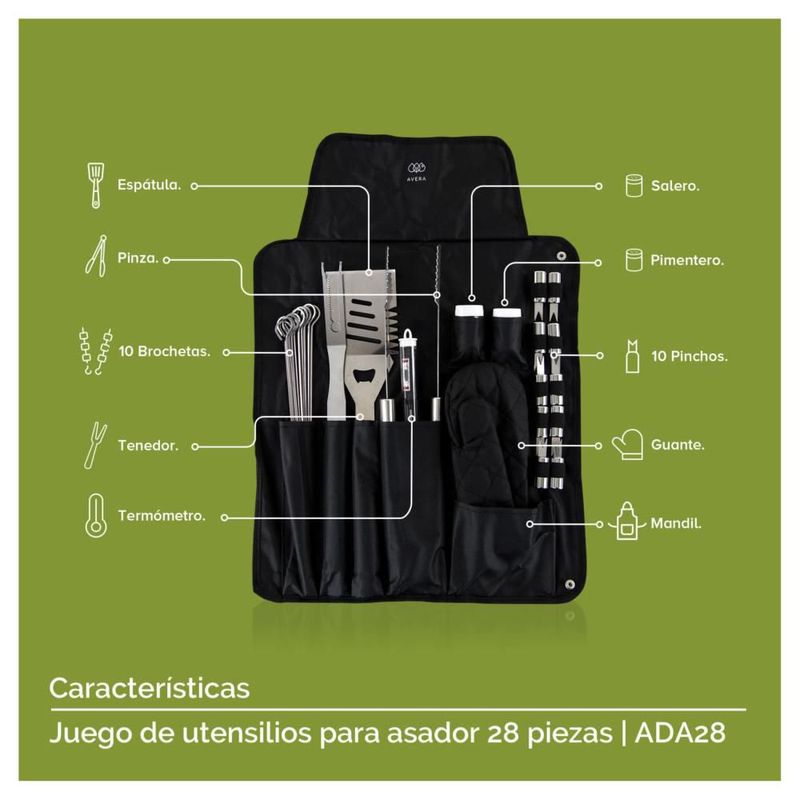 Mandil Y Kit De Utensilios Para Asador Parrilla Avera ADA28