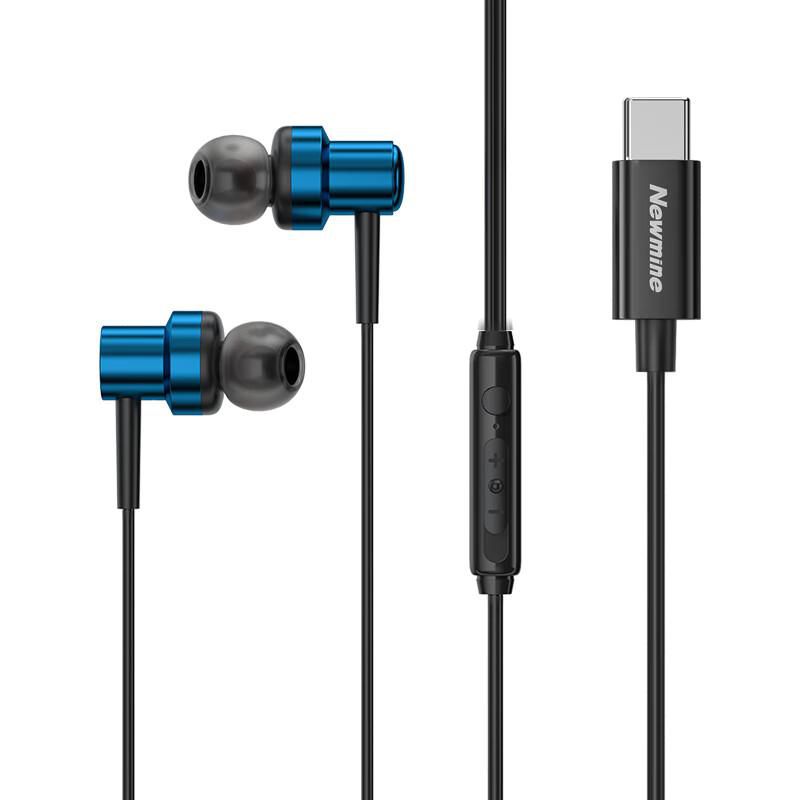 Manos Libres Newmine XL13 alámbricos azules con control integrado USB Tipo-C