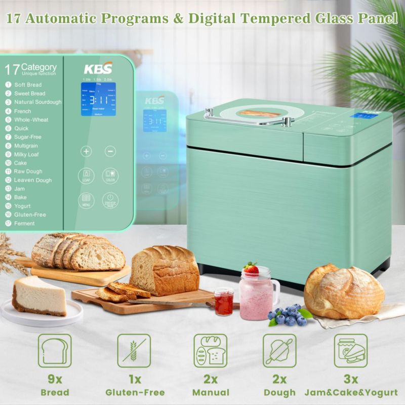 Línea blancaElectrodomésticosEspecializadosMáquina de pan de convección KBS de 710 W con dos calentadores, 1 kg, bandeja de cerámica saludable y dispensador automático de