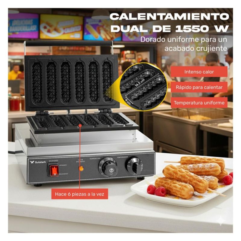 Línea blancaElectrodomésticosSandwicheras y WaflerasMaquina para Banderillas Gutstark Comercial Industrial con Control de Temperatura Equipo Profesional para Negocio Cocina Rapida Acero Resistente