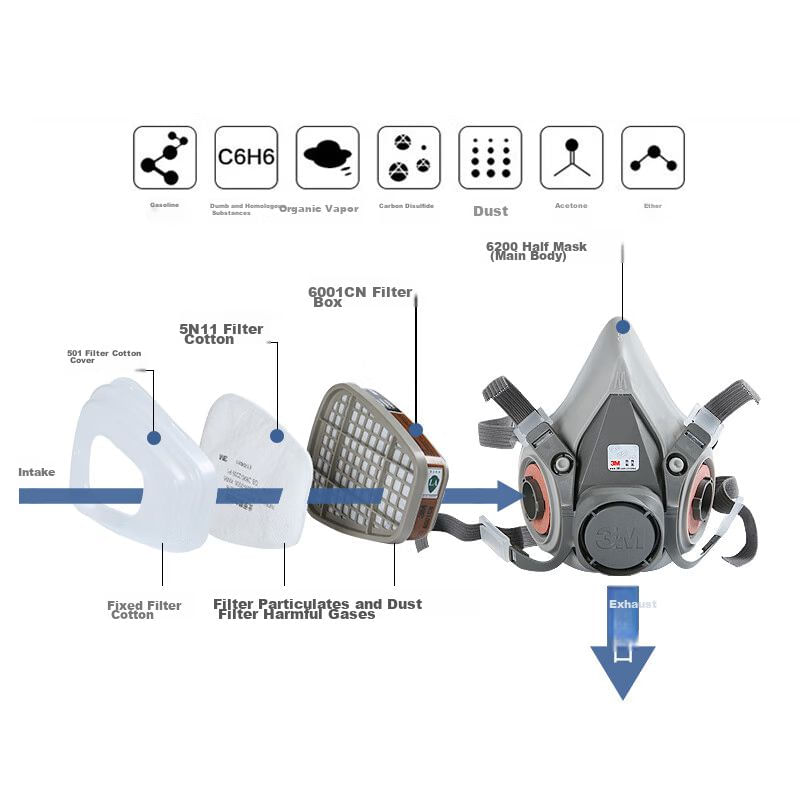 HerramientasConstrucciónEquipo de SeguridadMascarilla 3M 6200 Con Cartucho 6006 Para Gases Y Partículas