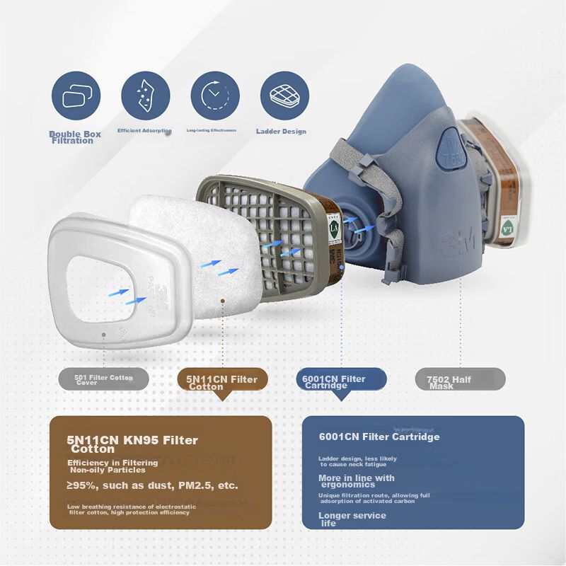 HerramientasConstrucciónEquipo de SeguridadMascarilla De Gas 3M 7502 Silicona Con Kit 6001