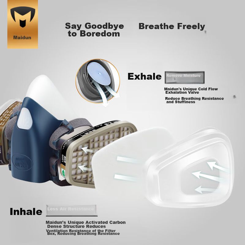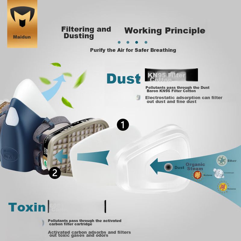 HerramientasConstrucciónEquipo de SeguridadMascarilla Respiradora Maidun 602P Con Filtro De Carbón Activado Y Escudo Facial