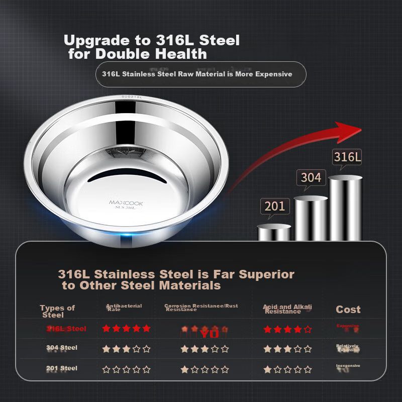 Maxcook, Olla De Acero Inoxidable 316L Para Sopa, 20 Cm De Diámetro, De Paredes Gruesas, Más Ancha Y Profunda, Compatible Con Estufa De Inducción, Mcw