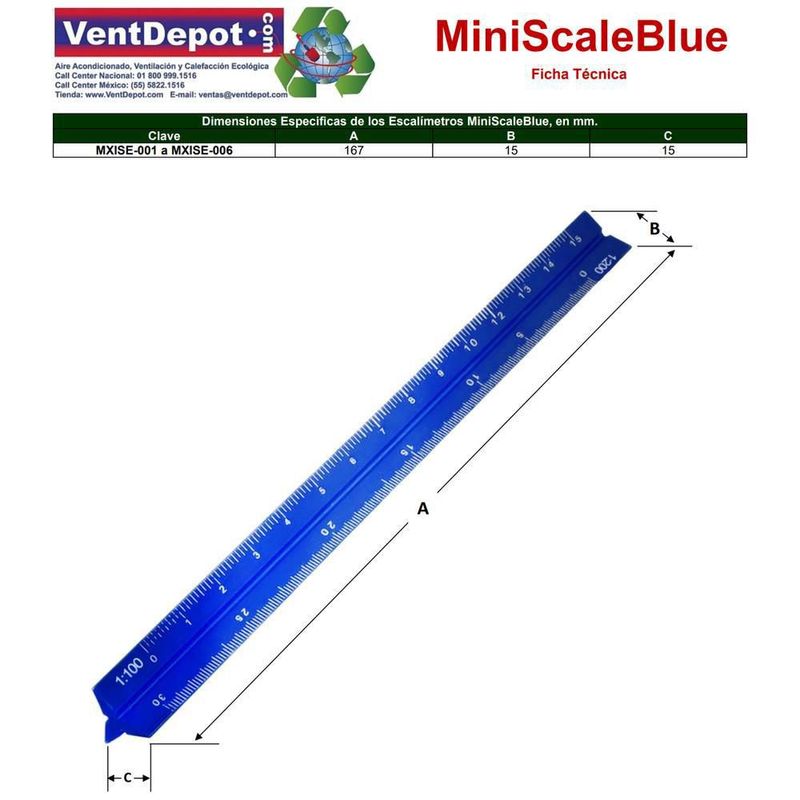 Herramientasde MediciónMedidores de DistanciaMedidor de aluminio portátil MXISE-004 MiniScaleBlue Escalímetro de aluminio resistente