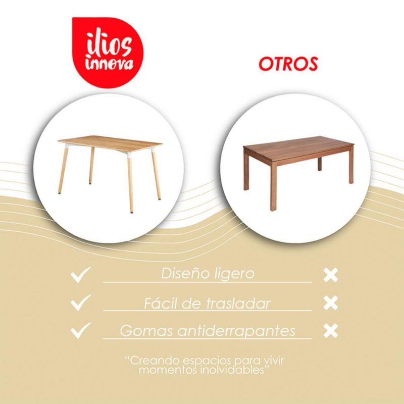 MueblesSalaMesas auxiliaresIlios Innova | Mesa de Comedor Oslo Café Claro Extensible con Patas Metálicas y Esquinas Seguras. Diseño Funcional e Ideal para Cocina o Comedor.