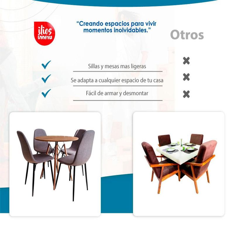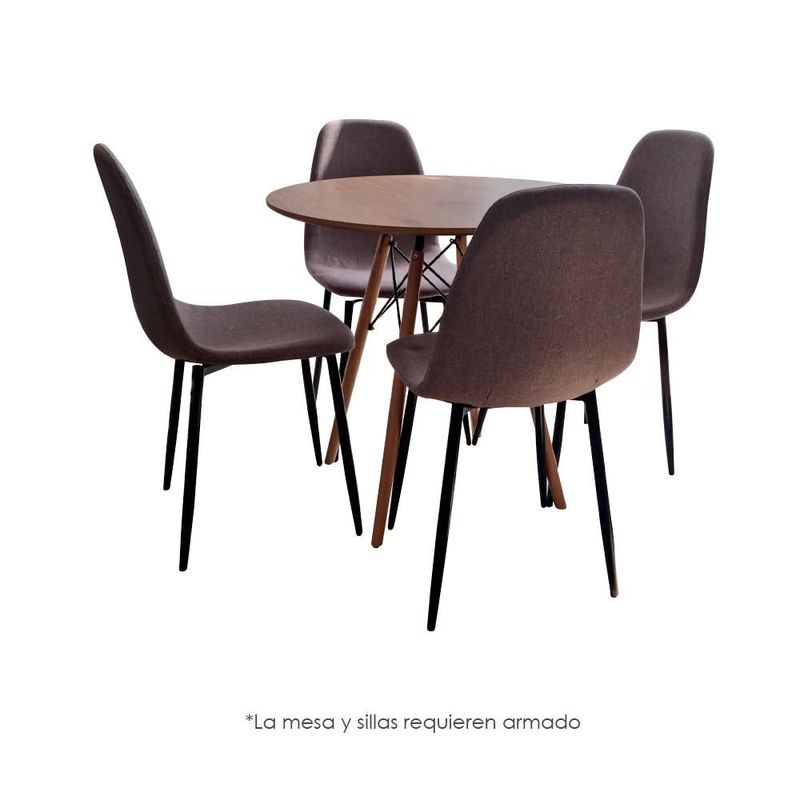 Mesa Comedor Redonda Oslo con 4 Sillas Café