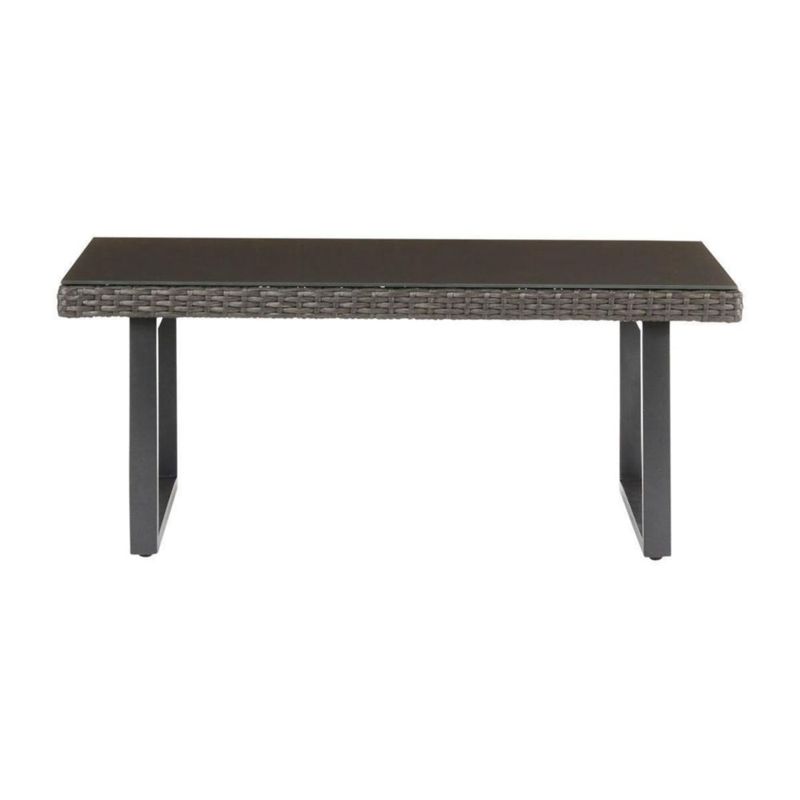 Mesa de Centro Auxiliar Naterial Noa de Ratán y Acero con Cubierta de Cristal Templado Apta para Exterior