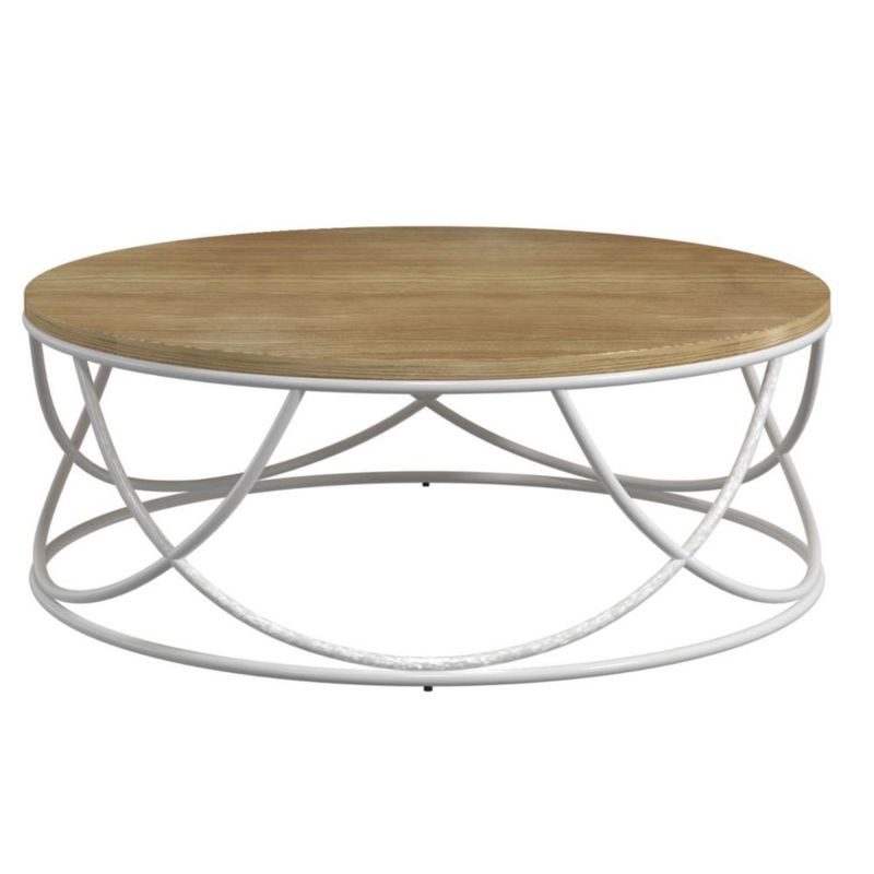 Mesa de Centro Circular con Madera MDF y Base de Metal Blanca (Diámetro: 80cm)