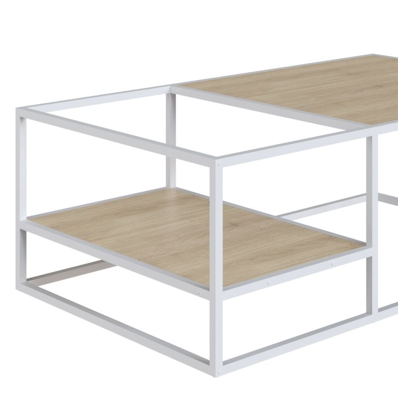 MueblesSalaMesas auxiliaresMesa de Centro Rectangular Color Blanco y Madera con 2 Tableros y Estructura Metálica de Acero MDP 100cm (Ancho)*60cm (Profundo)