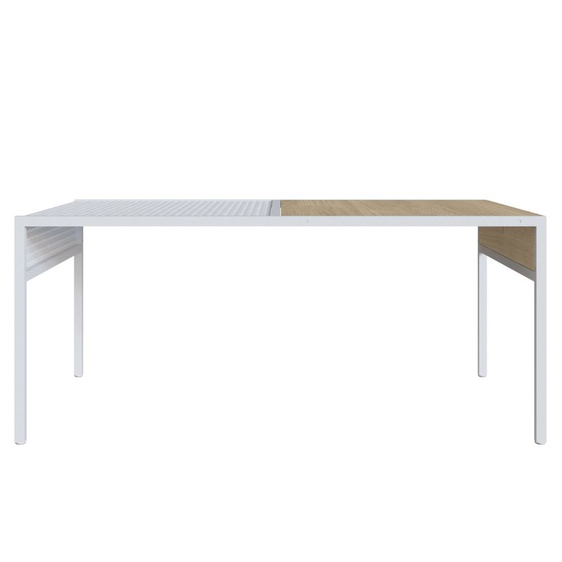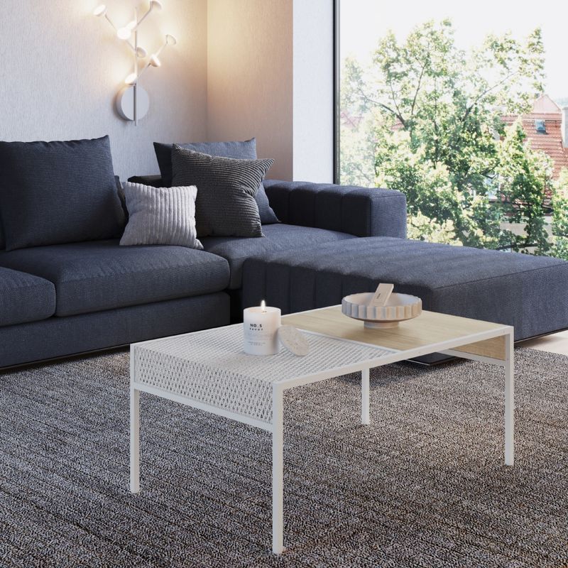 MueblesSalaMesas auxiliaresMesa de Centro Rectangular Color Blanco y Madera con Estructura Metálica de Acero MDP 80cm (Ancho)*50cm (Profundo)